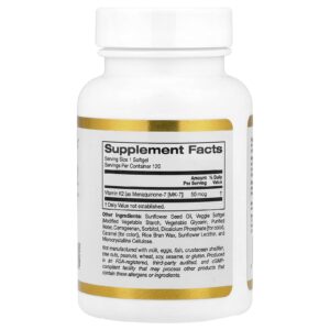 California Gold Nutrition Vitamina K2 (como Menaquinona-7) 50 mcg 120 Cápsulas Softgel Vegetais – California Gold Nutrition Suplementos Vitaminas Vitamina K Vitamina K2 MK-7.
