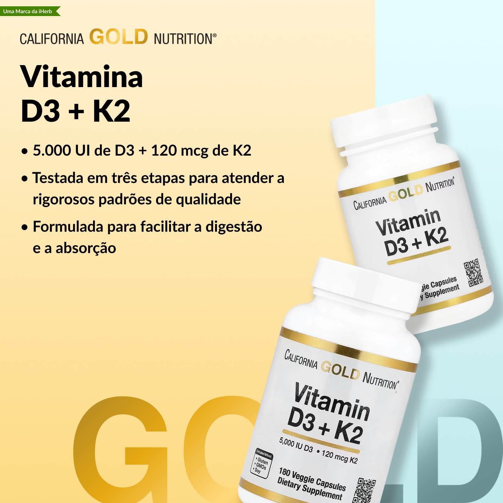 • Vitamina D3 + K2 em Cápsulas Vegetais da California Gold Nutrition®