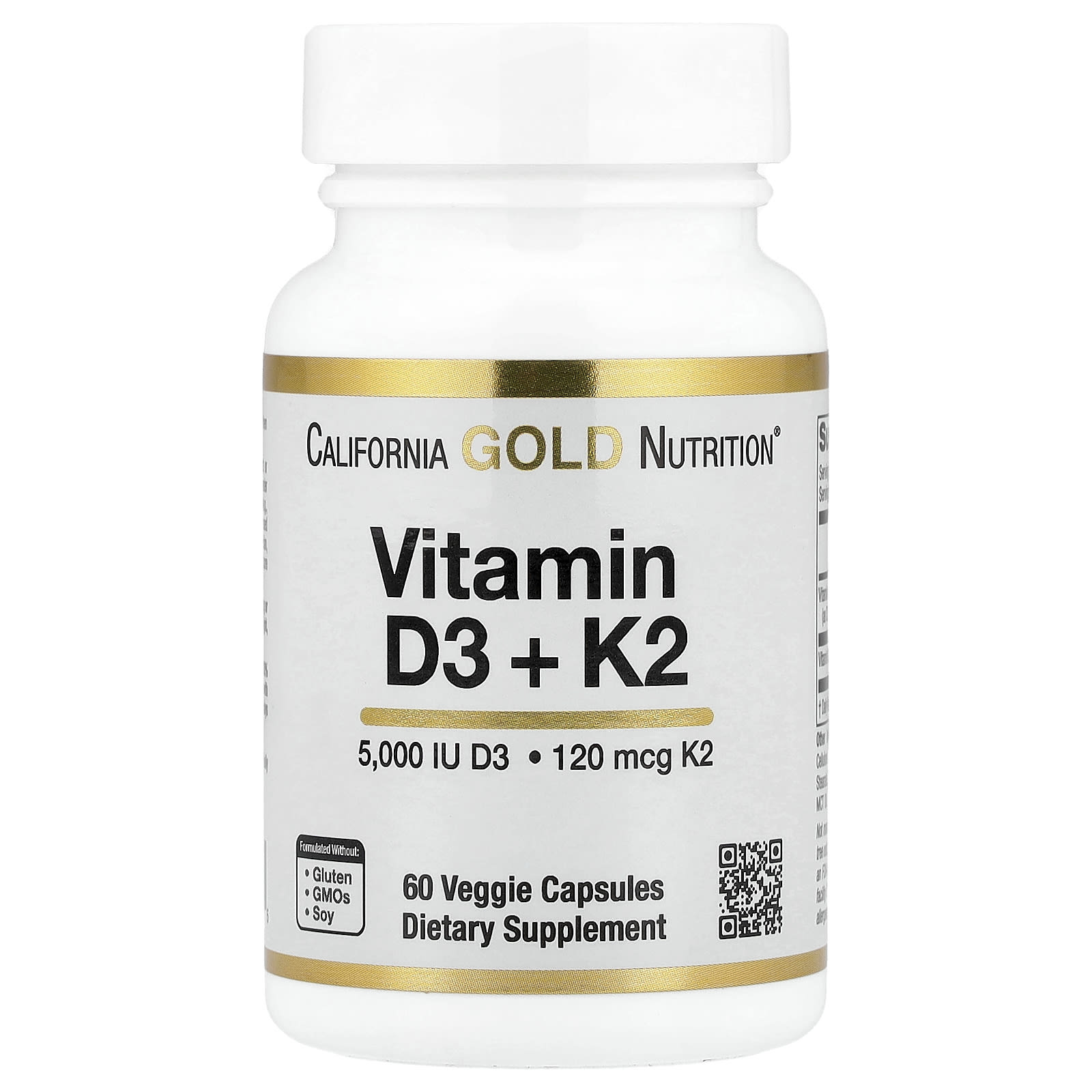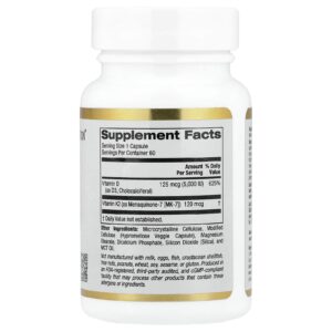 California Gold Nutrition Vitaminas D3 + K2 como MK-7 60 Cápsulas Vegetais