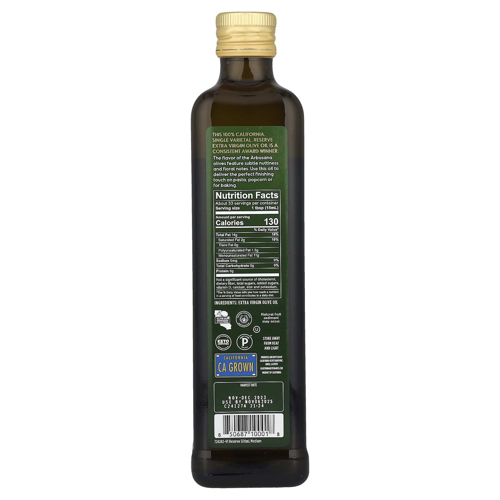Este óleo de oliva extravirgem 100% californiano, monovarietal e reserva é um vencedor de prêmios consistente.