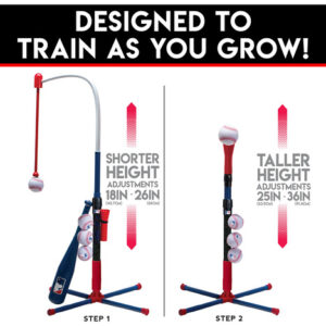 Franklin Sports Kids Batting Tee – MLB 2-in-1 Grow-with-Me – Adjustable Youth Hitting Tee – Perfect for Teeball and Baseball, Multi – GROW WITH ME: This batting tee is specifically designed to adjust and teach young teeball players how to practice their hitting as they continue to grow and improve! – HANGING TEE: For your youngest players, the hanging tee design suspends a ball anywhere from 18 to 26 from the ground using self stick technology so that young hitters can practice their hand eye coordination! – TRADITIONAL TEE: Once players start to grow and improve, remove the hanging attachment to transform it into a traditional batting tee in seconds! The traditional tee adjusts from 25 to 36 in height – ALL INCLUDED: This set comes complete with the Grow-with-Me Batting Tee, (1) 21 inch plastic bat, and (4) baseballs with self-stick covers, providing you with everything you need to play! – SIZE: Assembles to 25.5 x 25.5 x 45.5; ages 3+; Hanging Tee Height Adjustments: 18 to 26 ; Traditional Tee Height Adjustments: 25 – 36