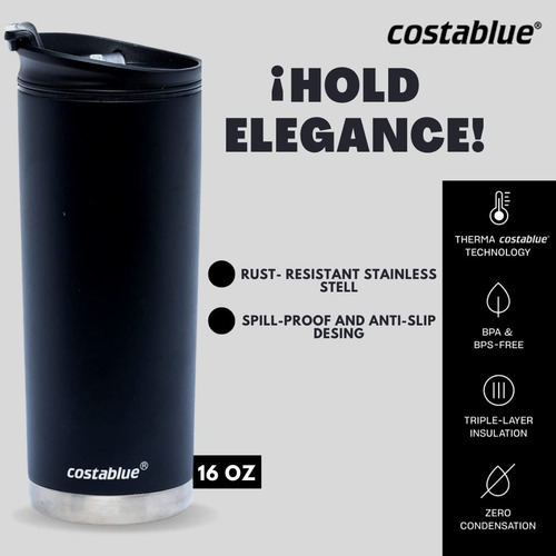A caneca de viagem de aço inoxidável Costablue é sua companheira diária! Nossa caneca de viagem de café à prova de derramamento pode conter 16 onças de sua bebida favorita. Não é só para tomar café; coloque sua bebida favorita dentro e divirta-se! A caneca de café isolada a vácuo manterá as bebidas aquecidas por até 5 horas ou resfriadas por 12 horas. A tampa giratória se fecha bem para formar uma vedação à prova de vazamentos, garantindo que nenhum líquido seja derramado em suas roupas ou em sua bolsa. Essas xícaras foram feitas para acompanhar você. Leve-o para trabalhar, fazer compras, acampar ou viajar. – CANECA ISOLADA: O copo de café isolado Costablue é feito de aço inoxidável isolado a vácuo de parede dupla para manter suas bebidas frescas ou quentes por muito tempo. Esta caneca de café para viagem mantém suas bebidas quentes por 3 horas e frias por 8 horas. – MUITOS USOS: Nossas canecas de viagem não são apenas para café! Desfrute de 16 onças de suas bebidas favoritas, como chá, água quente, cerveja, água gelada, coquetéis e muito mais. Nossos copos à prova de derramamento para adultos são perfeitos para beber em qualquer lugar quando você está acampando, viajando ou até mesmo fazendo piqueniques. – Construção durável: nossos copos térmicos são construídos com aço inoxidável que é inquebrável e resistente à ferrugem. A caneca de viagem isolada é leve e fácil de lavar. Nossa caneca de aço inoxidável está disponível em uma ampla variedade de cores. – TAMPAS À PROVA DE VAZAMENTOS: A tampa sem BPA do nosso copo de viagem é fácil de limpar e abrir. A tampa giratória se encaixa firmemente na ranhura, então ela fica selada quando você terminar de beber. Nunca derramará ou vazará em suas roupas ou em sua bolsa. – Caneca reutilizável: nossa caneca de café de viagem isolada é uma ótima alternativa reutilizável às garrafas plásticas. Encha e reabasteça sempre que quiser! A tampa do copo não contém BPA e pode ser colocada na prateleira superior da máquina de lavar louça.