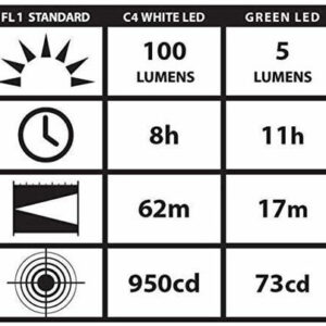 Descrição do produto A lanterna de farol LED preto Stylus Pro da Stylus Pro com coldre possui um fluxo super brilhante e alto, LED de 1/2 watts, e tem uma vida útil de até 30.000 horas. Consiste em um sistema micro óptico que facilita a otimização da saída e o tempo de execução. Esta lanterna é à prova de corrosão e tem construção impermeável com uma lente de policarbonato inquebrável, bem como um clipe de bolso. Da lanterna de caneta LED preta Stylus Pro do fabricante Streamlight com coldre possui um super brilhante, alto fluxo, LED de 1/2 watts, e tem uma vida útil de até 30.000 horas. Consiste em um sistema micro óptico que facilita a otimização da saída e o tempo de execução. Esta lanterna é à prova de corrosão e tem construção impermeável com uma lente de policarbonato inquebrável, bem como um clipe de bolso.