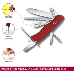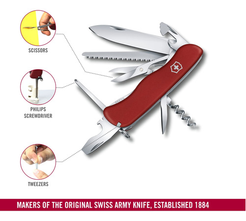 Lá fora, mas não estranho, nosso Outrider fica do lado direito do intrépido. Aventureiro, mas acessível, ele reúne 14 funções em um pacote de bolso. Feito para atividades ao ar livre, ele o ajudará a navegar pela paisagem com destreza. Quando você volta para casa, ele também encontra seu nicho. A tesoura integrada e a chave de fenda Phillips compacta e longa são apenas duas partes de seu arsenal de ferramentas domésticas e externas. – Fabricada na Suíça pela Victorinox, fabricante do canivete suíço original – Garantia vitalícia – Lâmina de travamento grande com mecanismo de trava, chave de fenda com fechadura de 5 mm, abridor de garrafas – descascador de fios, serra de madeira, abridor de latas, chave de fenda de 3 mm, alargador/furador, Saca-rolhas – chave de fenda Phillips longa 0/1, tesoura, pinça, palito de dente, chaveiro