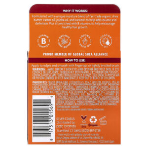 Formulado com uma mistura hidratante exclusiva de manteiga de karité orgânica de comércio justo, óleo de rícino, óleo de jojoba e caramelo para ajudar a adicionar volume e definição. Além disso, é enriquecido com vitaminas B para ajudar a estimular o crescimento capilar saudável.