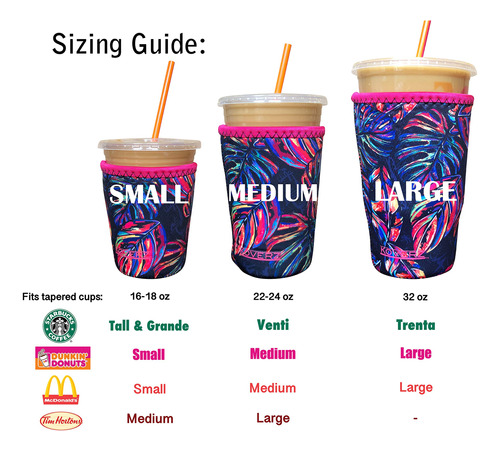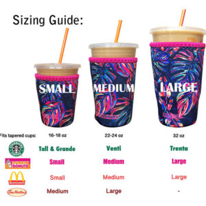 Koverzs Iced Coffee Sleeve ensures your drinks stay at the ideal temperature, keeping them as refreshing as the first sip. Our cup sleeve prevents condensation, keeping your hands dry, ensuring a firm grip on the cup while also safeguarding surfaces from water rings. Crafted from durable neoprene, this reusable iced coffee cup sleeve protects your cup from damage and comes in three sizes: small (16-18 oz), medium (22-24 oz), and large (32 oz). Compatible with popular iced coffee cups like Starbucks, McCafe, and Dunkin, its ideal for work or any outing. Easy to clean, just wash it in the machine or rinse by hand. With its vibrant designs, our neoprene cup sleeve adds a fun touch to your beverage, besides being an eco-conscious choice compared to disposable cup holders. – KEEPS DRINKS COLD/HOT: Enjoy your drinks at the perfect temperature with Koverzs Iced Coffee Sleeve. Designed to maintain the chill or warmth of your beverage, this insulated cup sleeve ensures every sip is as refreshing as the first. – PREVENTS CONDENSATION: Our sleeve eliminates messy condensation and helps to keep your hands dry for a secure grip on your coffee cup. The cup sleeve also acts as a protective barrier between your cup and surfaces, preventing the buildup of water rings. – DURABLE: Made from high-density neoprene, this iced coffee sleeve protects your cup from dings and scratches while withstanding wear and tear for long-lasting use. The sleeve comes in 3 sizes: small for 16-18 oz, medium for 22-24 oz, and large for 32 oz. – VERSATILE: Whether you are heading to work, the gym, or enjoying a day out, our cup sleeve is the ideal accessory for your iced coffee or any other iced drink. The sleeve is compatible with Starbucks, McCafe, Dunkin, and other iced coffee cups. – REUSABLE: Simply toss the neoprene cup sleeve in the washer or rinse it in the sink for easy cleaning. Available in a range of colorful designs, it adds a fun touch to your drink while serving as an eco-conscious alternative to disposable cup holders.