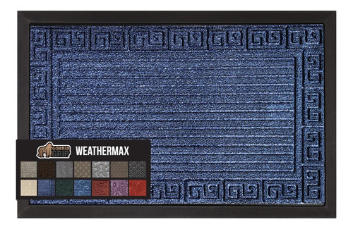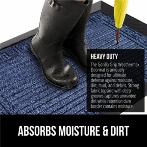 Are you tired of having to constantly clean and sweep away dirt, mud and debris from your home entry and exit ways? Our premium door mats are not only durable and long-lasting, they feature beautiful, stylish colors and patterns that will complement any home, doorstep or living space. Here are some things our customers want to know: What makes your door mats so durable? Our door mats are constructed of the highest quality, natural durable rubber that feature a textured underside that works on clean, smooth floor surfaces. How exactly does the mat capture dirt and mud? Weve intentionally designed our door mats with solid, heavy-duty beveled rubber borders to help keep dirt and moisture trapped in the absorbent mat fabric and off your floors. Plus, the polypropylene fabric is fast drying so your mat and floors stay dry. Can I use this mat under low-clearing doors? Yes, our mat is designed with a .25 inch low-pile for most low-clearing doors or entryways. This mat is perfect for both interior or exterior spaces.> How do I clean this mat? Its easy! For a quick clean, simply vacuum with a hand-held or regular sized vacuum. You mat can also spot clean the mat using a mild soap and a damp cloth. For deeper cleans, take the mat outdoors and use a garden hose to rinse off. Always air dry. Never use bleach on the mat. – Heavy Duty All Weather Doormat: The Gorilla Grip WeatherMax doormat is durably designed to withstand all weather conditions, from snow and rain to mud and sand; the all season mat features deep grooves that help capture moisture, dirt and debris – Absorbs Moisture and Dirt: strong, rubber beveled border helps to form a retention dam to capture moisture, mud or other messy unwanted debris from tracking into your home; the slightly raised polypropylene fabric helps to trap dirt within its patterned grooves and dries quickly – Textured Rubber Backing: constructed with a durable textured rubber backing – Stain and Fade Resistant: stain and fade resistant topside for long lasting use both inside and outside your home – Durable for High Traffic Areas: ultra strong for high traffic areas and busy homes; .25 inch slim low profile design is ideal for low clearing doors or entryways; mat measures 23 by 35 inches
