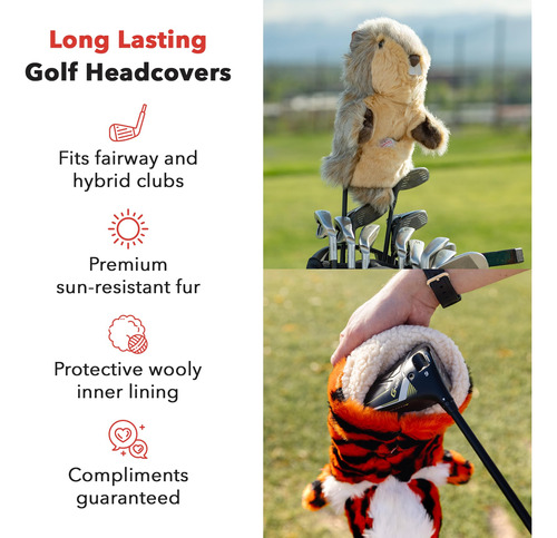Daphnes Headcovers Gopher Hybrid Headcover Premium Hybrid and Fairway Wood Headcovers Funny Golf Club Covers Stylish Protection for Your Clubs Mens Golf Gear Hybrid Headcover for Men and Women – Premium Golf Club Covers: Our Gopher Hybrid Headcover can accommodate all types of hybrid and fairway wood golf clubs, catering to the preferences of golfers with various club selections. It features an adjustable cinch on its back, distinguishing it from other golf headcovers and ensuring a customized fit. Whats more, the Gopher hybrid boasts sun-resistant fur that retains its vibrant colors for years, enhancing the standout appearance of your golf bag. – Unique & Creative Designs: Our high-quality headcovers use lifelike colors and animal designs, adding personality to your golf bag. Our headcovers make a stylish statement while keeping your clubs safe from scratches and dings. Simply slide them on before or after your round to keep your clubs in top condition. – Long-Lasting Golf Covers: Each golf head cover uses premium, soft, weather-resistant fur. They are exceptionally durable and last for years. Plus, we sew every headcover with thread four times stronger than the thread in your shirt. Ensuring our golf club covers hold their shape and protect your valuable golf club accessories for years. – Trusted by Professionals: With a seal of approval from over 200 touring professionals, participating across prestigious tournaments such as the PGA and the LPGA, our head covers for golf clubs have earned the trust of renowned golfers including Tiger Woods, Collin Morikawa, Joel Dahmen, and other respected players, solidifying their reputation as the go-to choice for elite-level golfers seeking premium protection for their clubs. – Lifetime Guarantee: Our golf headcovers are guaranteed for life and have been since 1978. If you have any issues with your golf club head covers, contact our brand. Well either replace or mend your headcover. We stand firmly behind our products and are devoted to ensuring our customers receive the finest shopping experience. Thank you for supporting our small business!