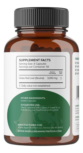 Cápsulas De Fígado De Boi Alimentado A Pasto 100% Criado