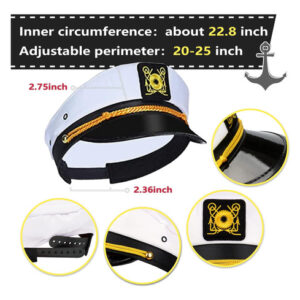 4 pack of captain hats bulk crafted of high-quality light-weight twill cotton and simulated shiny patent leather,Feature durable and washable, lightweight and breathable, very comfortable while wearing yacht captain hat. – Pack of 4 Sailor Hats: 4 pack of captain hats with gold embroidery badges on the front, the decoration and harmonious color are delicate enough for you to create a cool nautical party with your friends. – Adjustable: Captain Hats Adult are adjustable to meet different head circumstance, you can adjust them to the comfortable tightness, proper size that fits for whole family. – Classic Design: Nautical Captain Sailor Hat with an embroidered patch that adds a nautical flair to any outfit, a great cruise accessory for all your nautical outfits. – Material: Captain hat bulk crafted of high-quality light-weight twill cotton and simulated shiny patent leather,Feature durable and washable, lightweight and breathable, very comfortable while wearing yacht captain hat. – Wide Application: To look stylish, captain hats is preferred to variety of parties: Halloween, Costume parties cosplay party, family cruises and more occasions.Wear the captain hats for party, be the Most eye-catching navy captain!