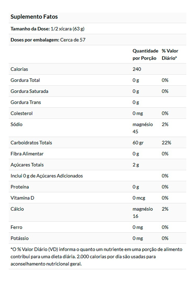 5. Composição de Qualidade Superior: Produzido com carboidratos complexos de alta qualidade, este suplemento é elaborado com ingredientes puros, sem aditivos artificiais. Validade longa