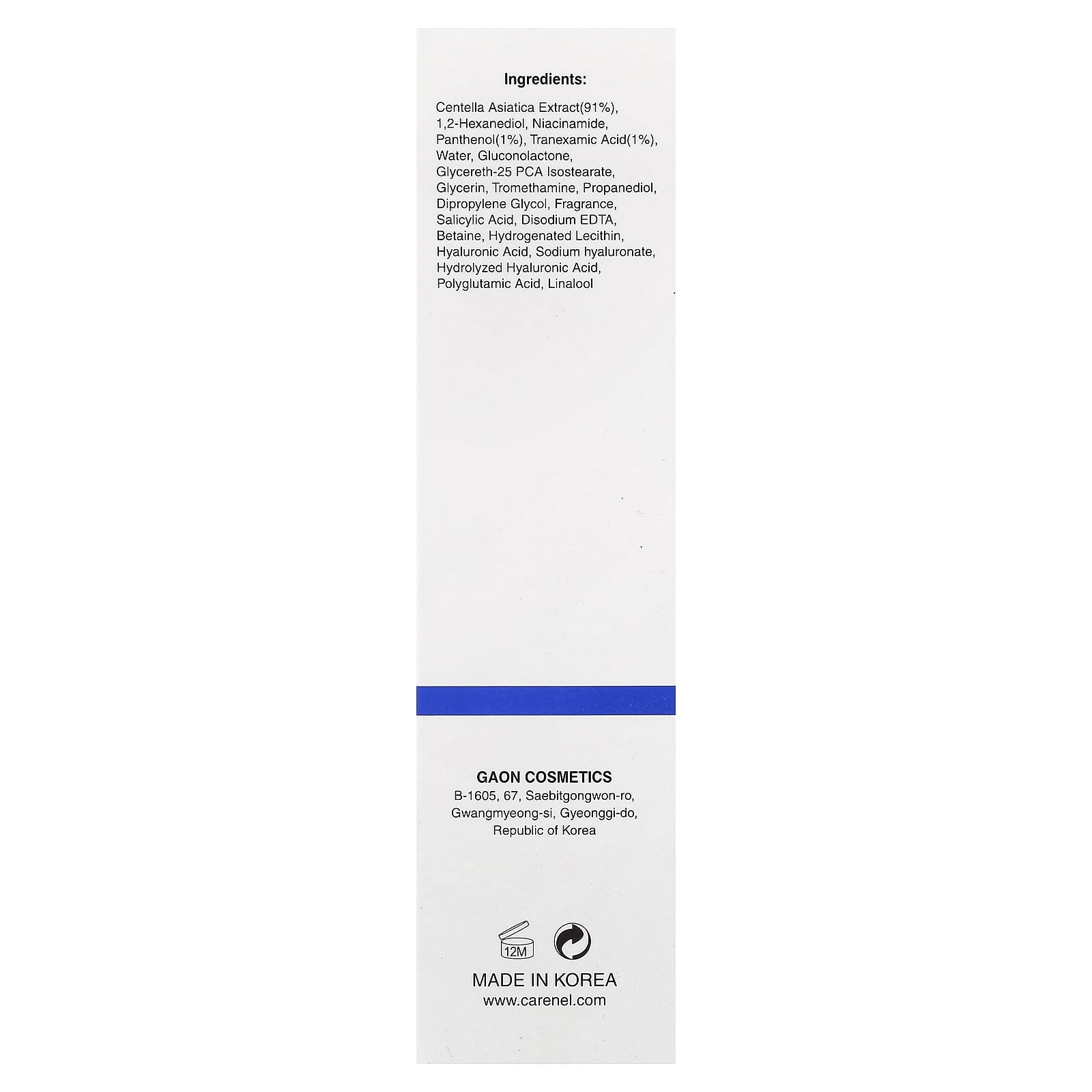 Extrato de Centella asiatica (91%), 1,2-hexanodiol, Niacinamida, pantenol (1%), ácido tranexâmico (1%), Água, gluconolactona, isoestearato de glicerila-25 pca, Glicerina, Trometamina, propanodiol, dipropilenoglicol, fragrância, ácido salicílico, EDTA dissódico, betaína, lecitina hidrogenada, ácido hialurônico, hialuronato de sódio, ácido hialurônico hidrolisado, ácido poliglutâmico, linalol.