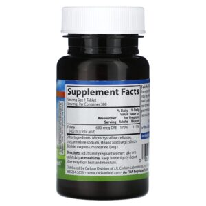 Carlson Ácido Fólico 400 mcg 300 Comprimidos Vegetarianos – Carlson Suplementos Vitaminas Vitamina B Vitamin B9 (Folate – Folic Acid).