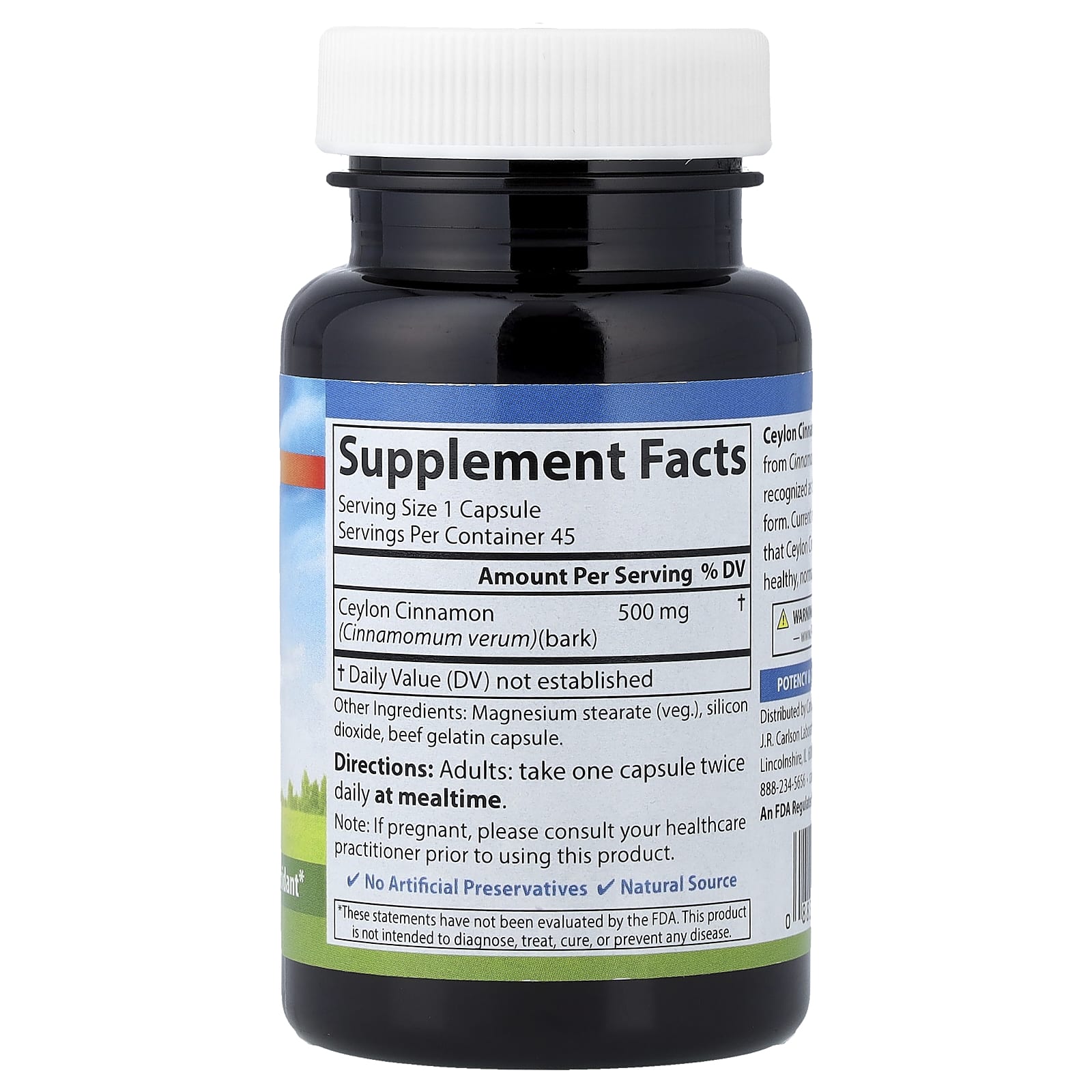 Carlson Canela do Ceilão 45 Cápsulas (500 mg por Cápsula) – Carlson Suplementos Controle de peso Suplementos de Canela.