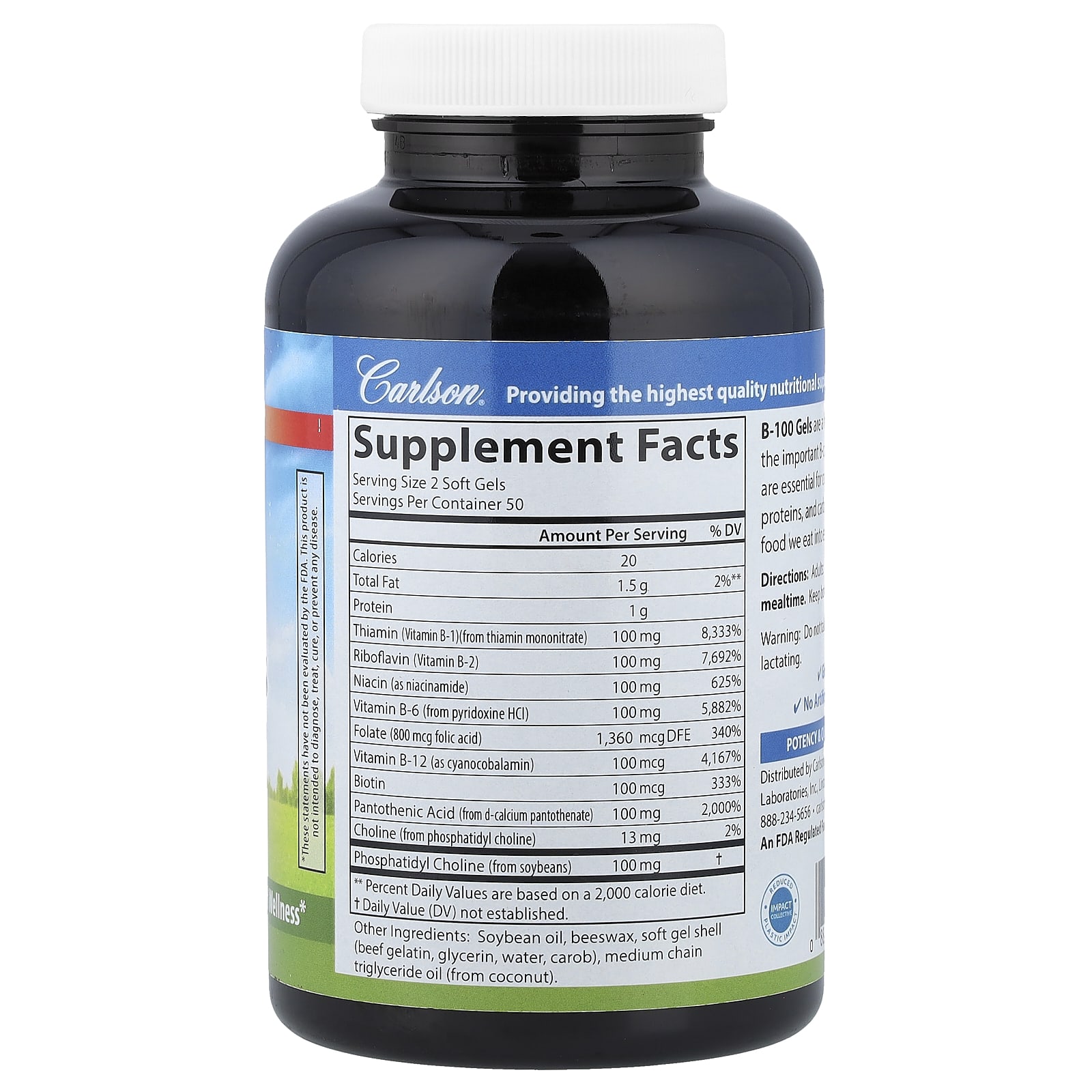 Carlson Cápsulas B-100 100 Cápsulas Softgel – Carlson Suplementos Vitaminas Vitamina B.