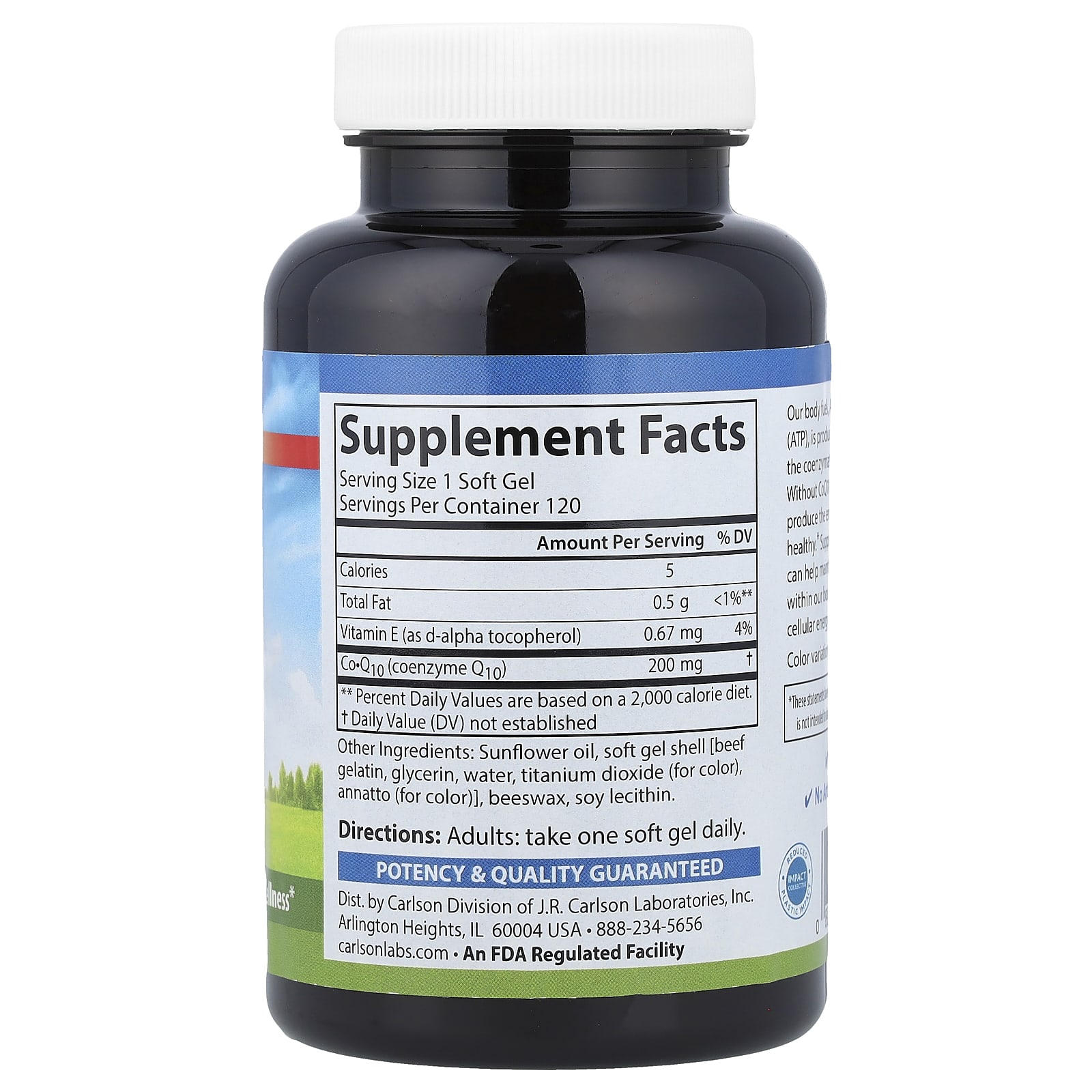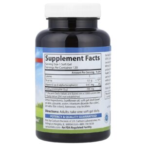 Carlson CoQ10 200 mg 120 Cápsulas Softgel – Carlson Suplementos Antioxidantes Coenzima Q10 (Ubiquinona).