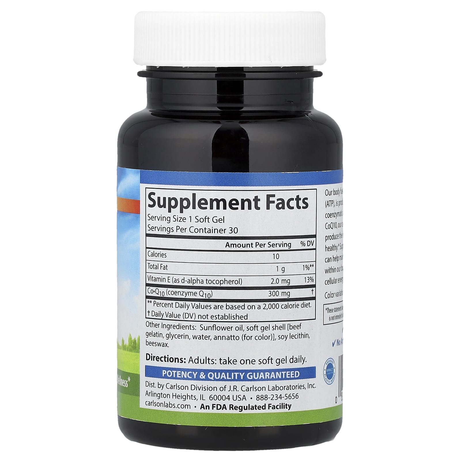 Carlson CoQ10 300 mg 30 Cápsulas Softgel – Carlson Suplementos Antioxidantes Coenzima Q10 (Ubiquinona).