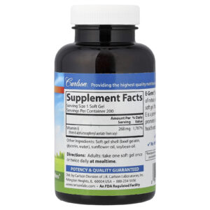 Carlson E-Gems® 400 UI (268 mg) 200 Cápsulas Softgel – Carlson Suplementos Vitaminas Vitamina E.