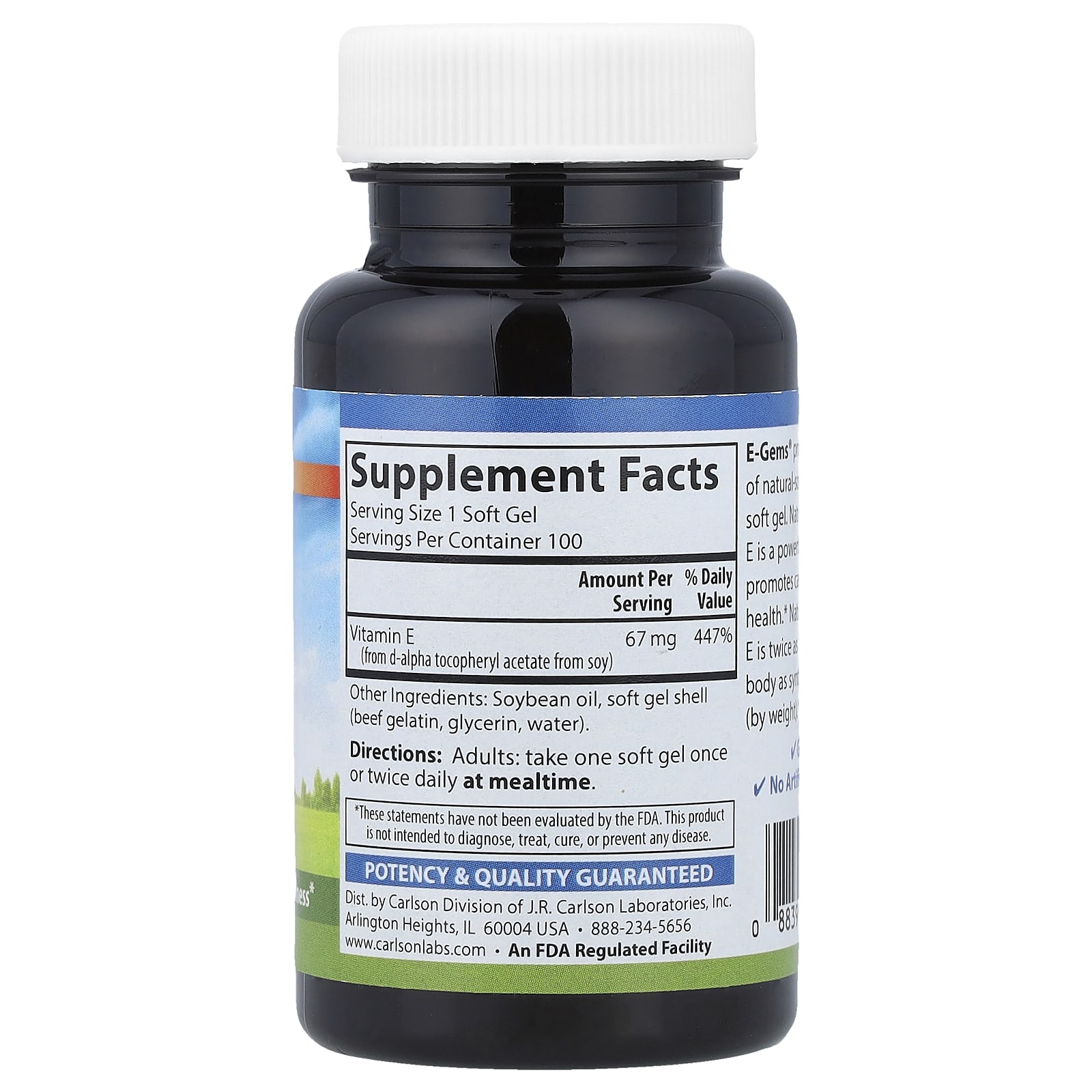 Carlson E-Gems® 67 mg (100 UI) 100 Cápsulas Softgel – Carlson Suplementos Vitaminas Vitamina E.