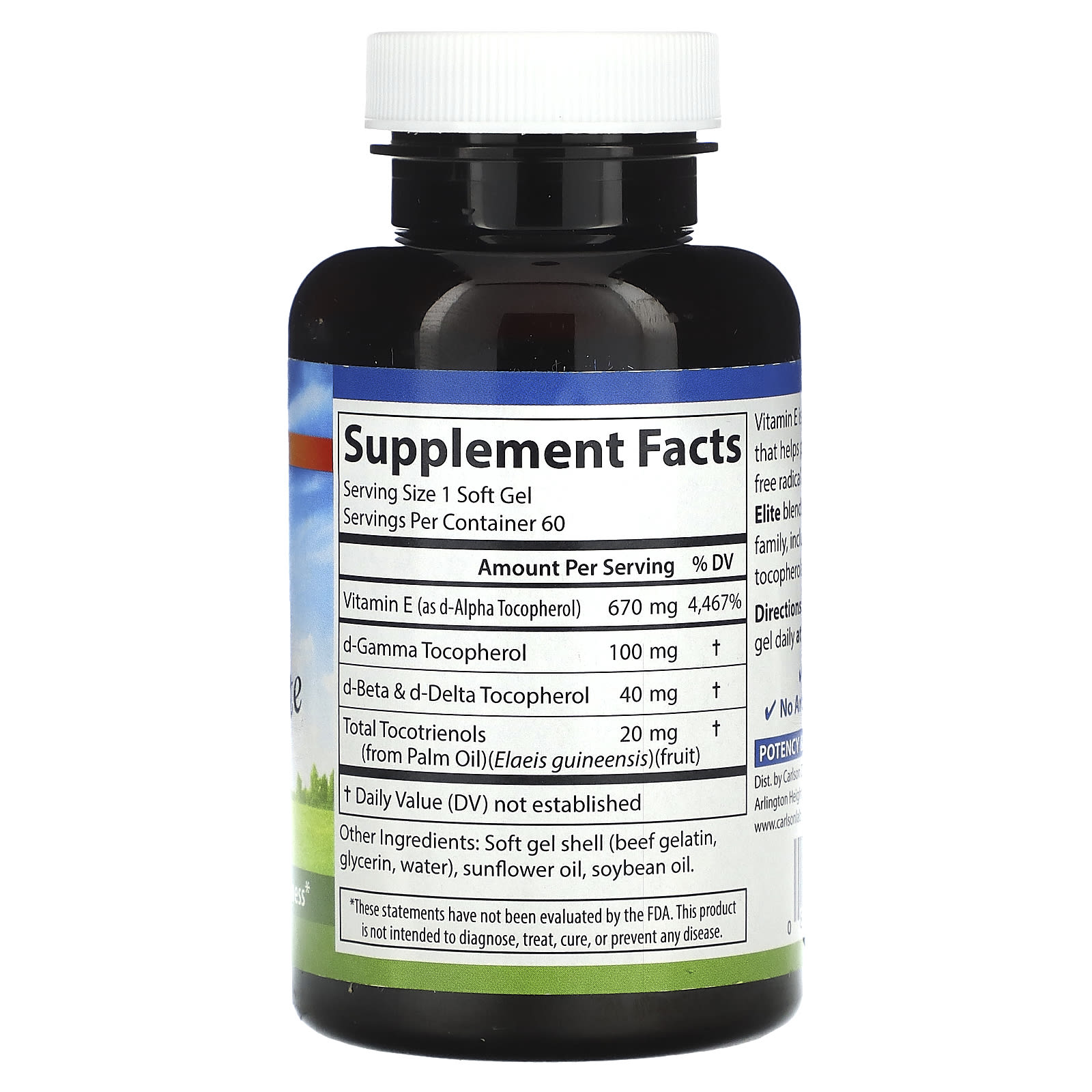 Carlson E-Gems Elite Vitamina E com Tocoferóis e Tocotrienóis 670 mg (1.000 UI) 60 Cápsulas Softgel – Carlson Suplementos Vitaminas Vitamina E Tocotrienóis.