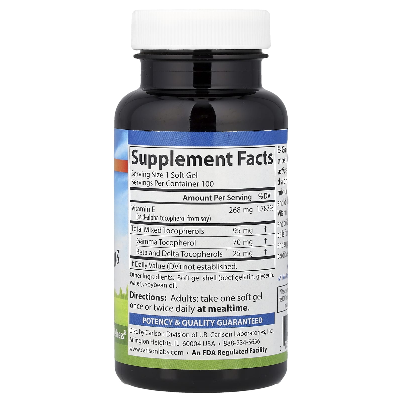 Carlson E-Gems® Plus 100 Cápsulas Softgel – Carlson Suplementos Vitaminas Vitamina E.