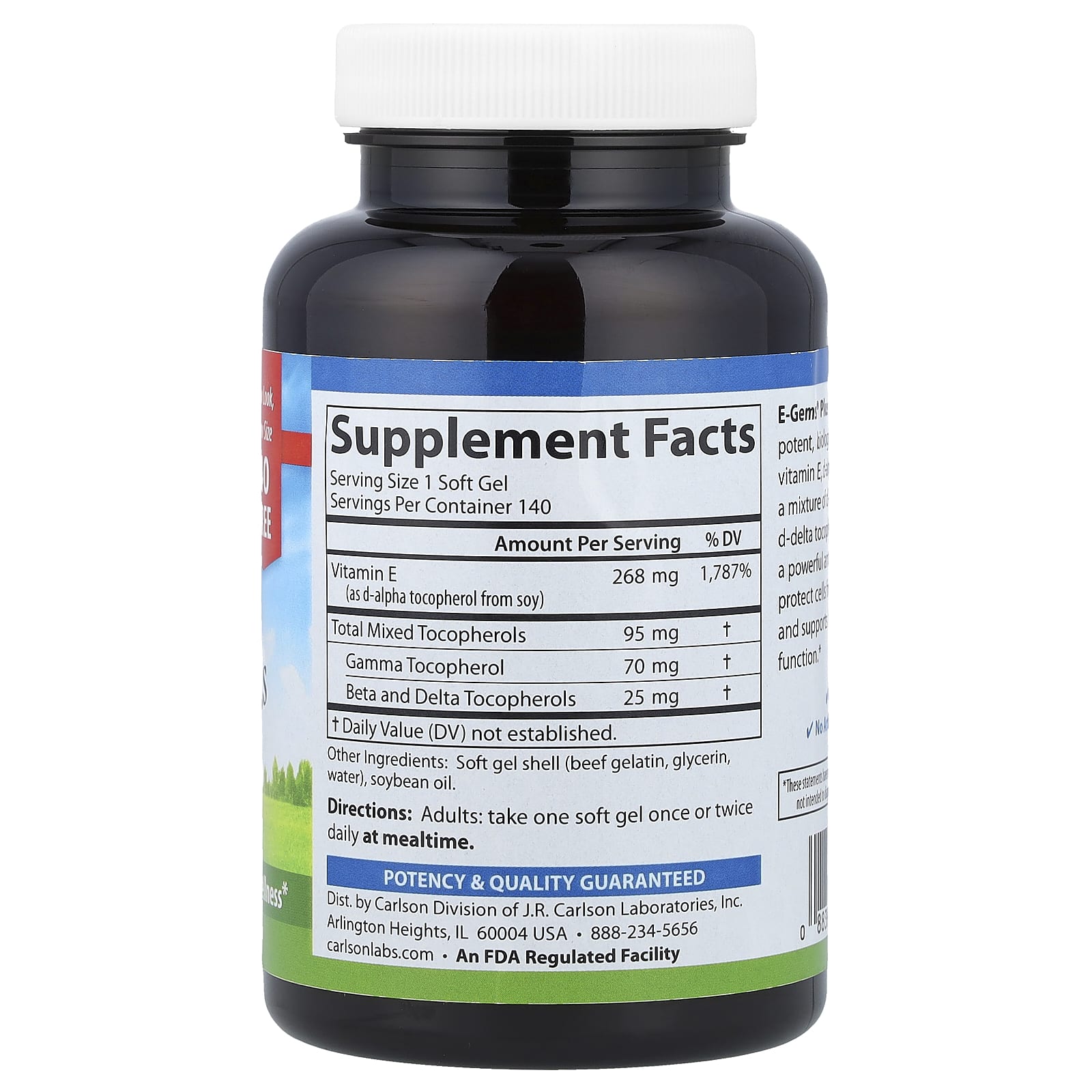 Carlson E-Gems® Plus 140 Cápsulas Softgel – Carlson Suplementos Vitaminas Vitamina E.
