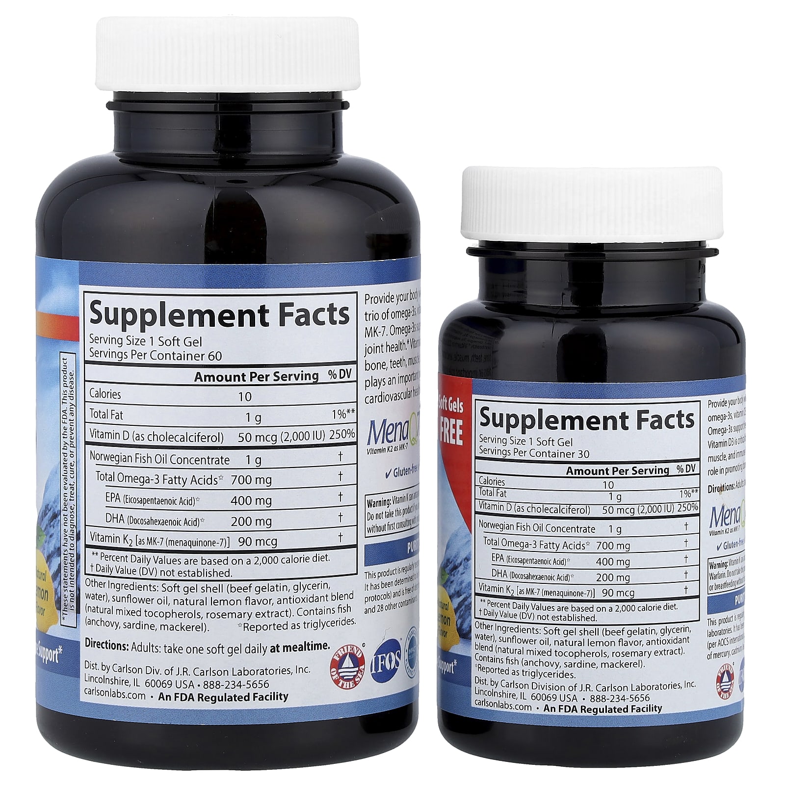 Carlson Elite Ômega-3 Com Vitaminas D e K Sabor Natural de Limão 90 Cápsulas Softgel – Carlson Suplementos Ômegas e Óleos de Peixe (EPA/DHA) Ômega 3 e Óleo de Peixe Vitaminas Vitamina D3 e K2.