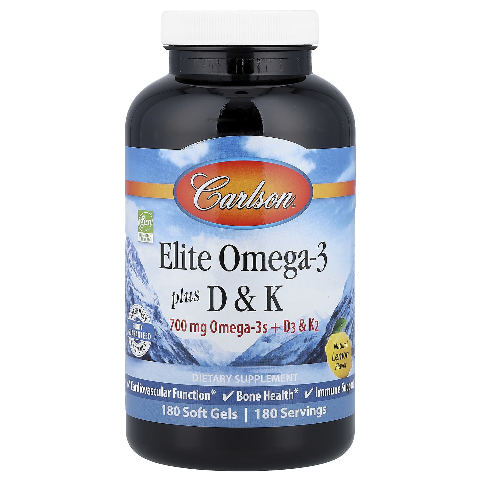 Carlson Elite Ômega-3 Plus D e K Limão Natural 180 Cápsulas Softgel – Carlson Suplementos Ômegas e Óleos de Peixe (EPA/DHA) Ômega 3 e Óleo de Peixe Vitaminas Vitamina D3 e K2.