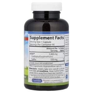 Carlson Enxofre e MSM 90 Cápsulas Vegetarianas – Carlson Suplementos Ossos, Articulações e Cartilagem MSM.