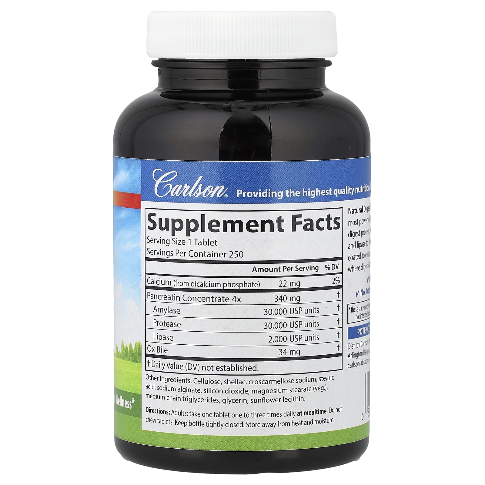 Carlson Enzimas Digestivas Naturais com Protéase Amilase e Lipase 250 Comprimidos – Carlson Suplementos Saúde Intestinal Enzimas Digestivas.