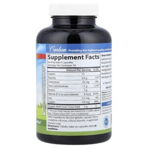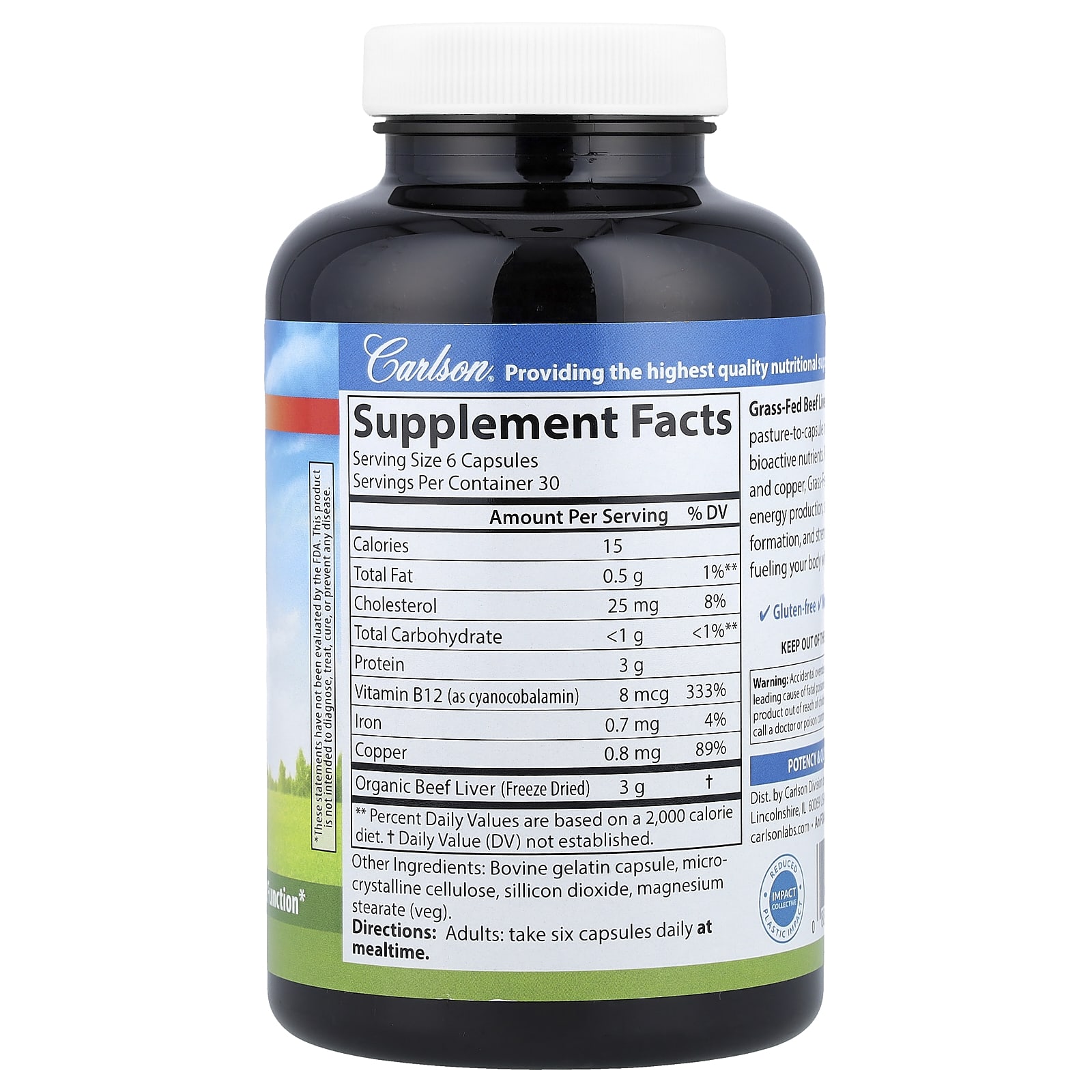 Carlson Fígado de Gado Criado no Pasto 180 Cápsulas – Carlson Suplementos Suplementos de órgãos animais.