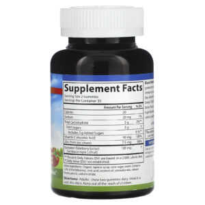 As Gomas de Sabugueiro Negro fornecem o sabugueiro preto potente e que melhora o sistema imunológico, além de zinco para a mistura definitiva de tripla ação e suporte imunológico. As gomas de sabugueiro preto com sabor natural de frutos silvestres são vegetarianas e não contêm xarope de milho com alto teor de frutose, nem sabores, corantes, adoçantes ou conservantes artificiais.
