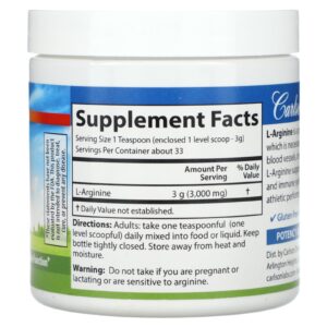 Carlson L-Arginina em Pó 100 g (353 oz) – Carlson Suplementos Aminoácidos L-Arginina.