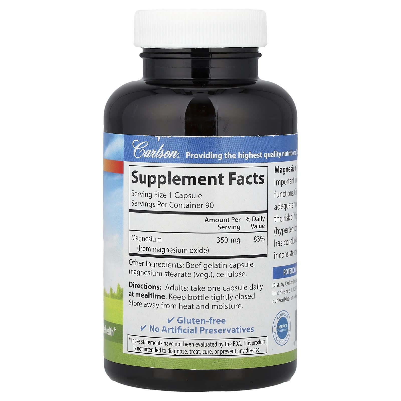 Carlson Magnésio 350 mg 90 Cápsulas – Carlson Suplementos Minerais Magnésio Óxido de Magnésio.