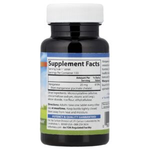 Carlson Manganês quelado 20 mg 100 comprimidos – Carlson Suplementos Minerais Manganês.