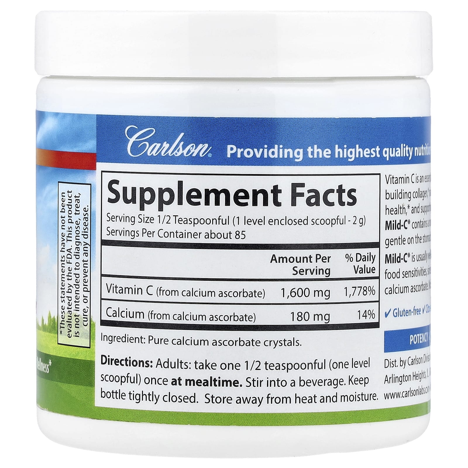 Carlson Mild-C® Vitamina C em Pó 170 g (6 oz) – Carlson Suplementos Vitaminas Vitamina C.
