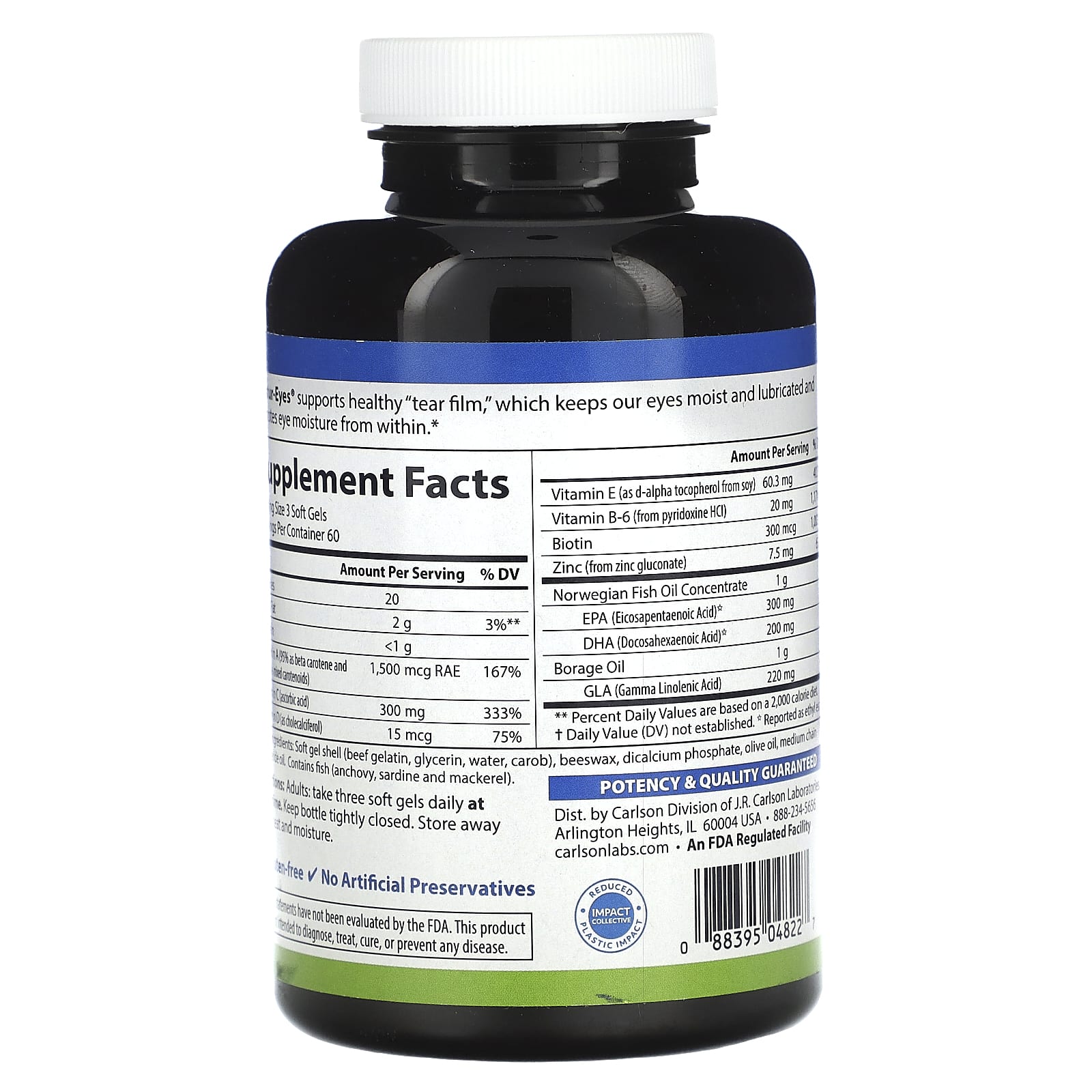 Carlson Moistur-Eyes 180 Cápsulas Softgel – Carlson Suplementos Olhos, Ouvidos e Nariz Suplementos para os Olhos.