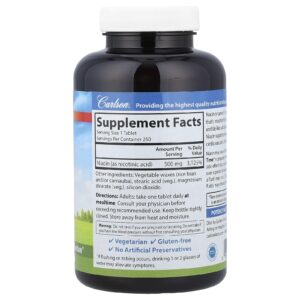 Carlson Niacin-Time® 500 mg 250 Comprimidos Vegetarianos – Carlson Suplementos Vitaminas Vitamina B Vitamina B3 (Niacina).