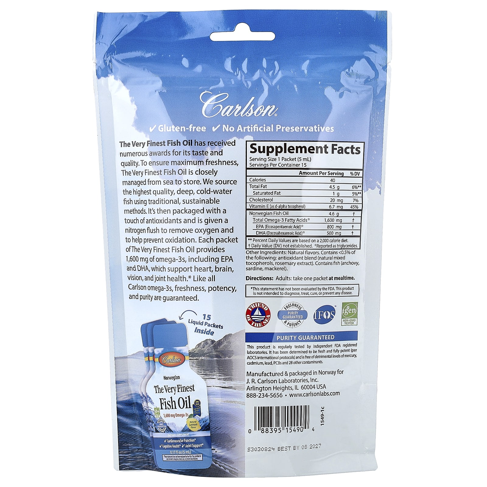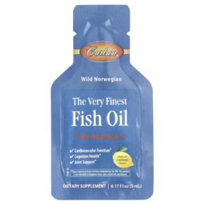 Carlson Norwegian The Very Finest Fish Oil Sabor Natural de Limão 15 Embalagens 5 ml (017 fl oz) Cada – Carlson Suplementos Ômegas e Óleos de Peixe (EPA/DHA) Ômega 3 e Óleo de Peixe.