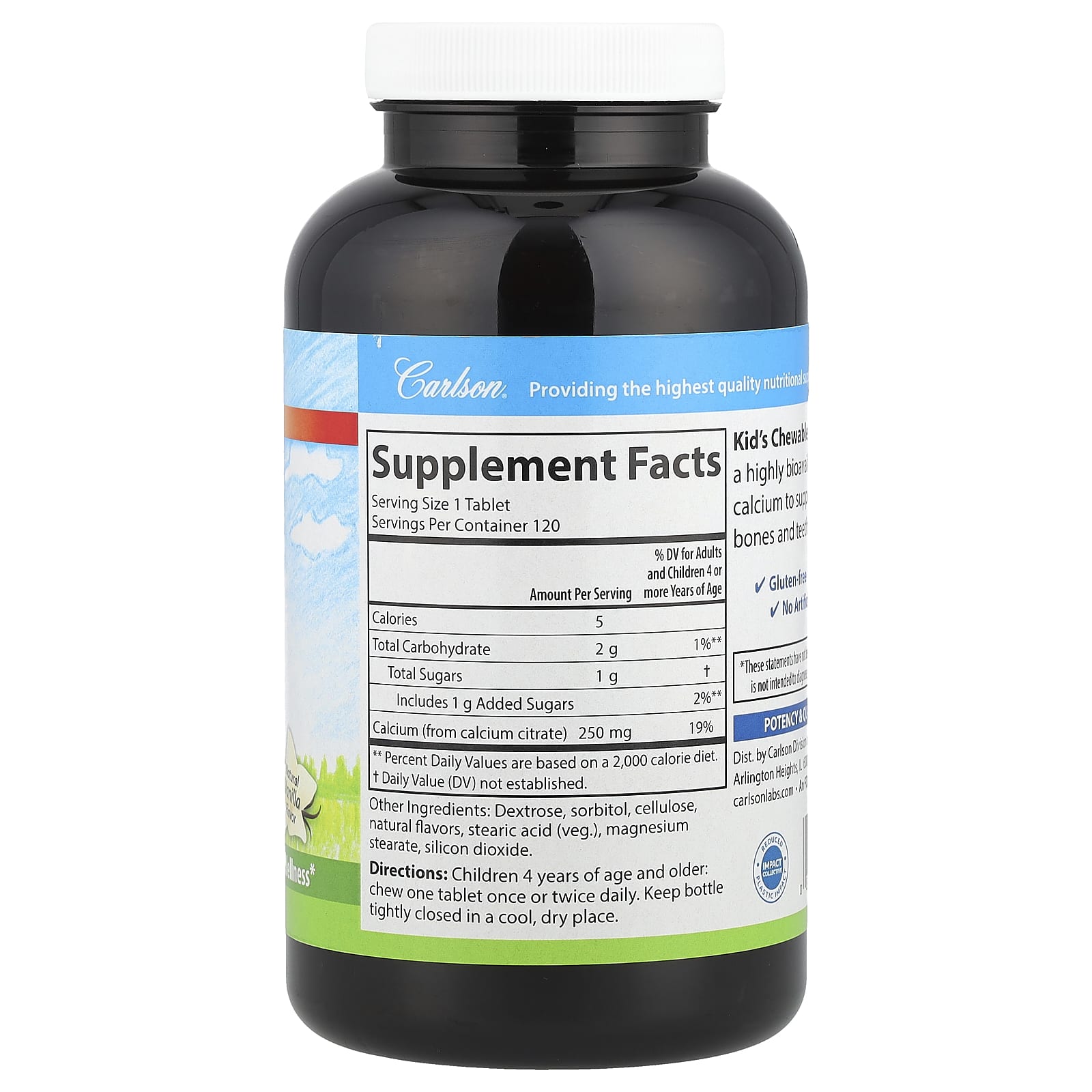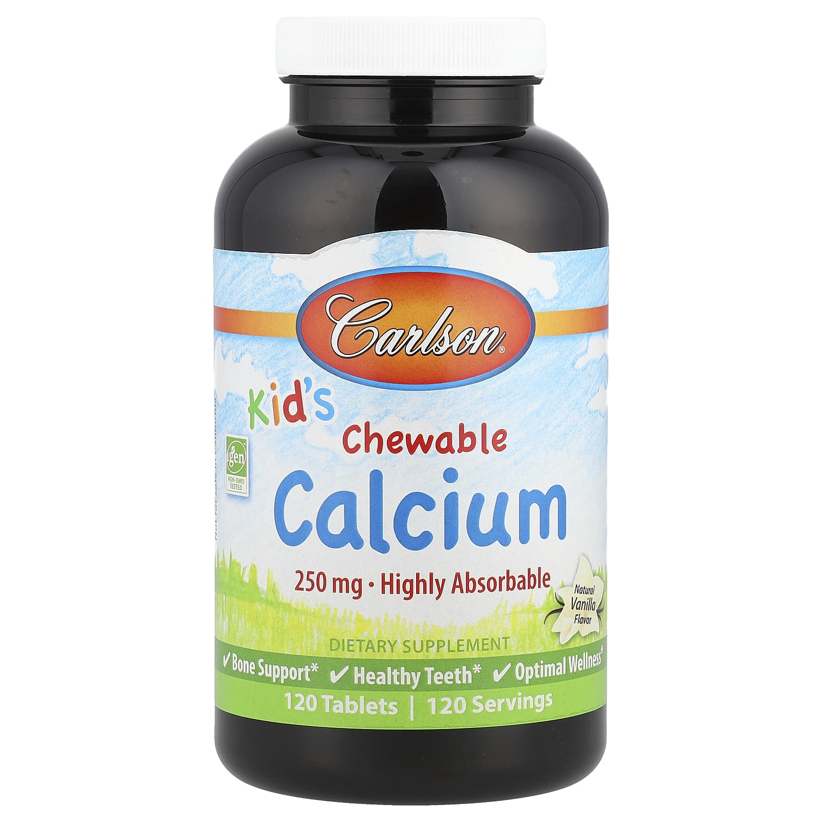 Carlson Para Crianças Cálcio Mastigável Baunilha Natural 250 mg 120 Comprimidos – Carlson Bebês e Crianças Saúde Infantil Minerais infantis Children’s Calcium.