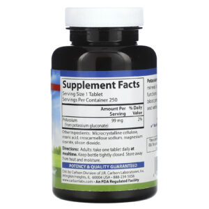 Carlson Potássio 99 mg 250 Comprimidos – Carlson Suplementos Minerais Potássio.