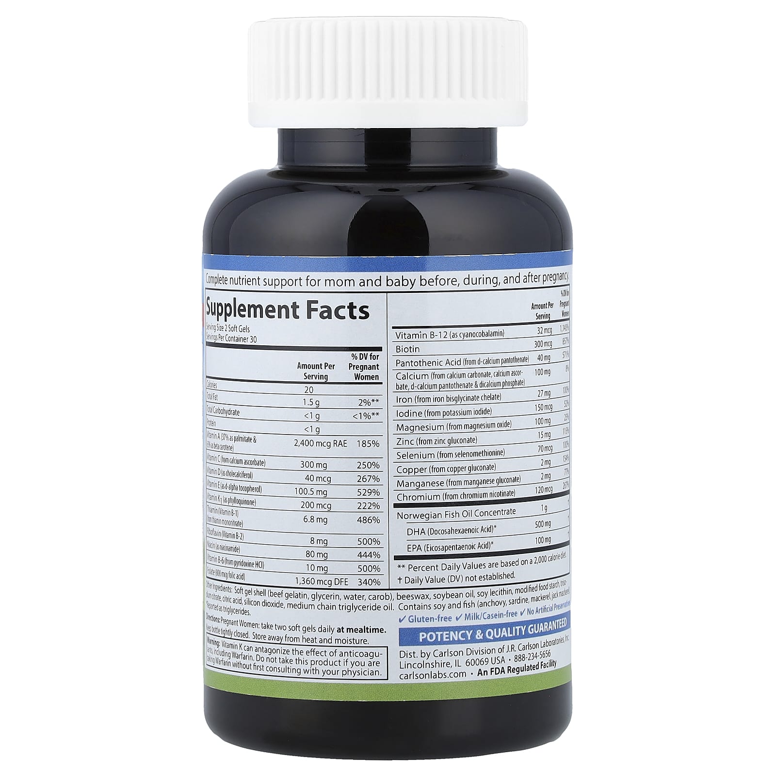 Carlson Pré-natal 60 Cápsulas Softgel – Carlson Bebês e Crianças Mamães e Maternidade Suplementos Pré-natais Multivitaminas Pré-natais.