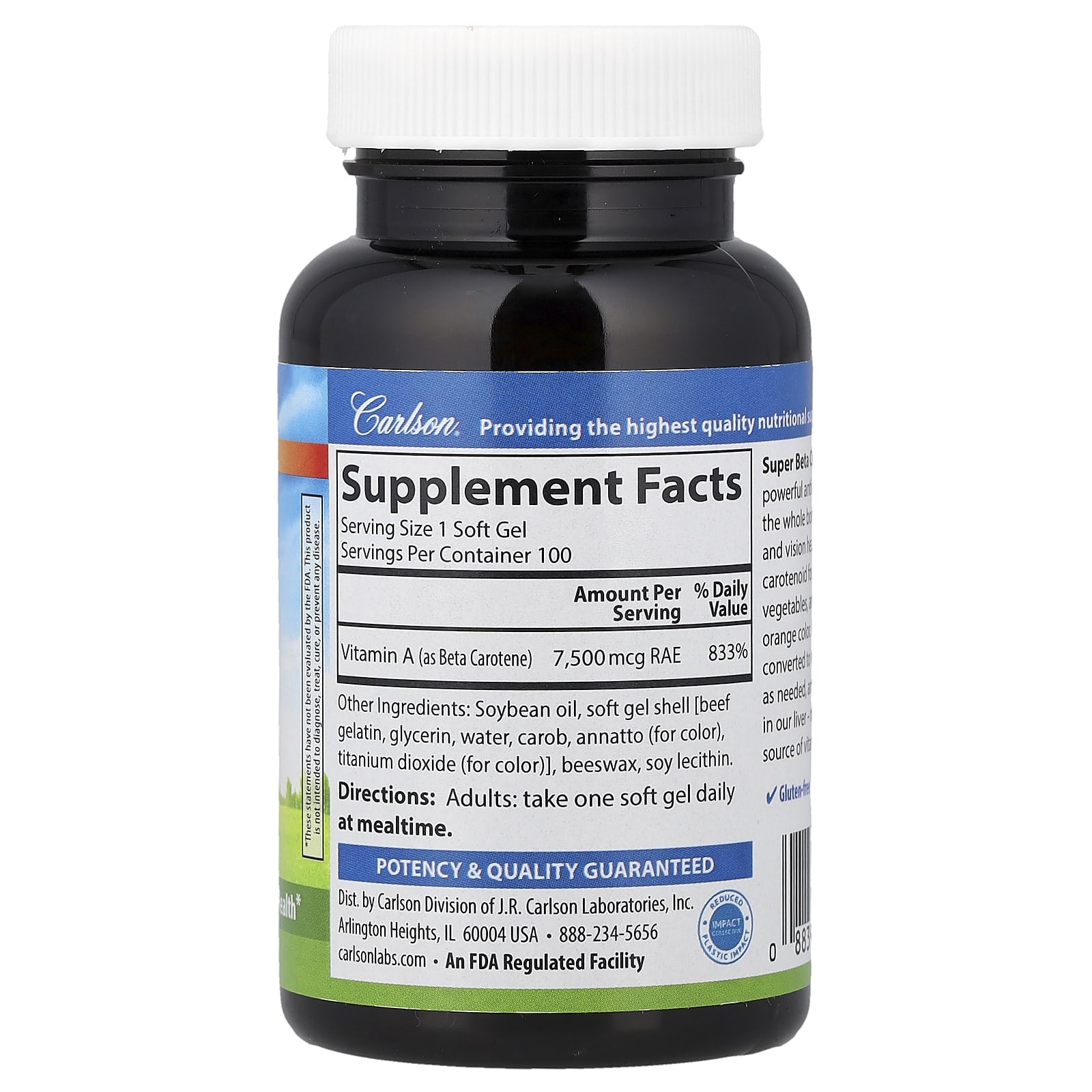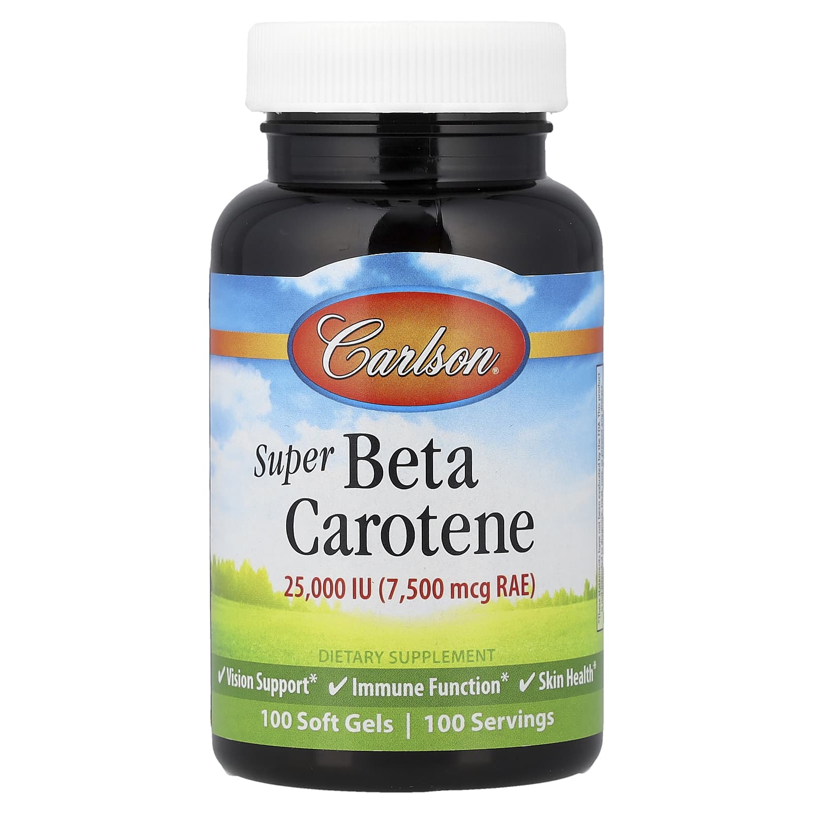 Carlson Super Betacaroteno 7.500 mcg RAE (25.000 UI) 100 Cápsulas Softgel – Carlson Suplementos Antioxidantes Beta Caroteno.