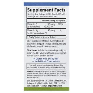 Carlson Super Daily® D3 + K2 1016 ml (034 fl oz) – Carlson Suplementos Vitaminas Vitamina D3 e K2 Vitamina K.