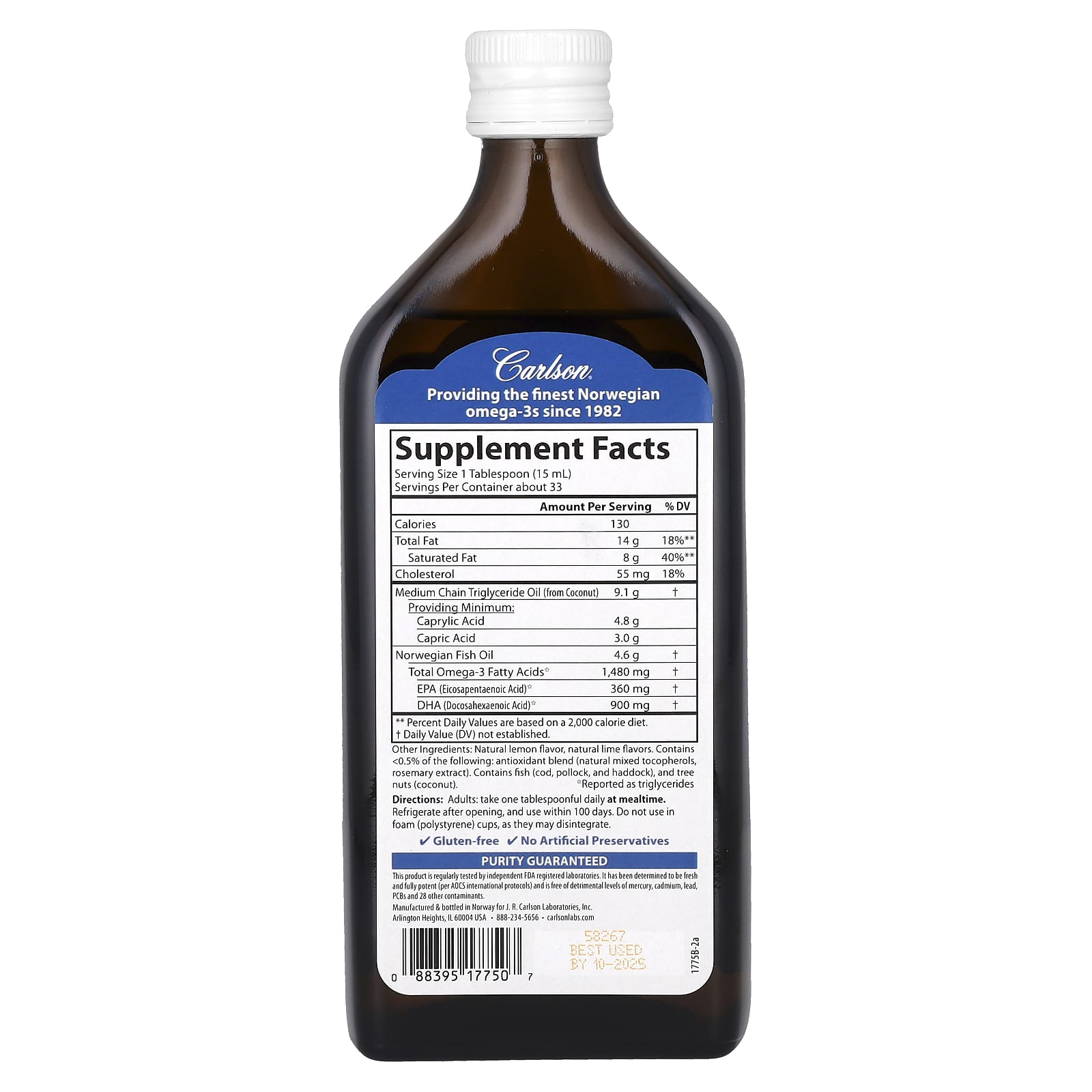 Carlson TCM e Ômega-3 Limão e Limão 500 ml (169 fl oz) – Carlson Suplementos Controle de peso Óleo de TCM e Ácido Caprílico Ômegas e Óleos de Peixe (EPA/DHA) Ômega 3 e Óleo de Peixe.