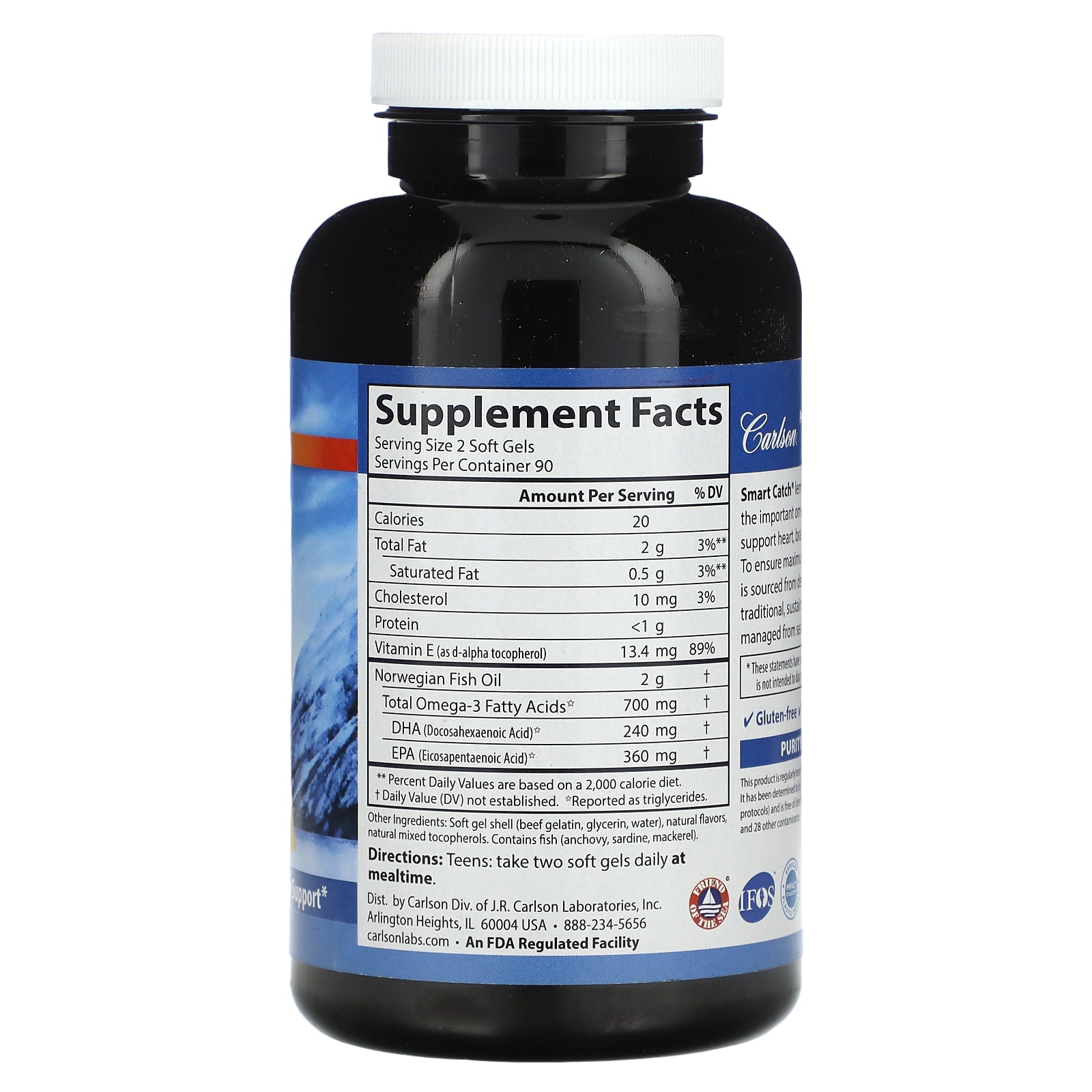 Carlson Teens Smart Catch Limão Natural 180 Cápsulas Softgel – Carlson Bebês e Crianças Saúde Infantil DHA e Ômegas para Bebês Saúde dos adolescentes.