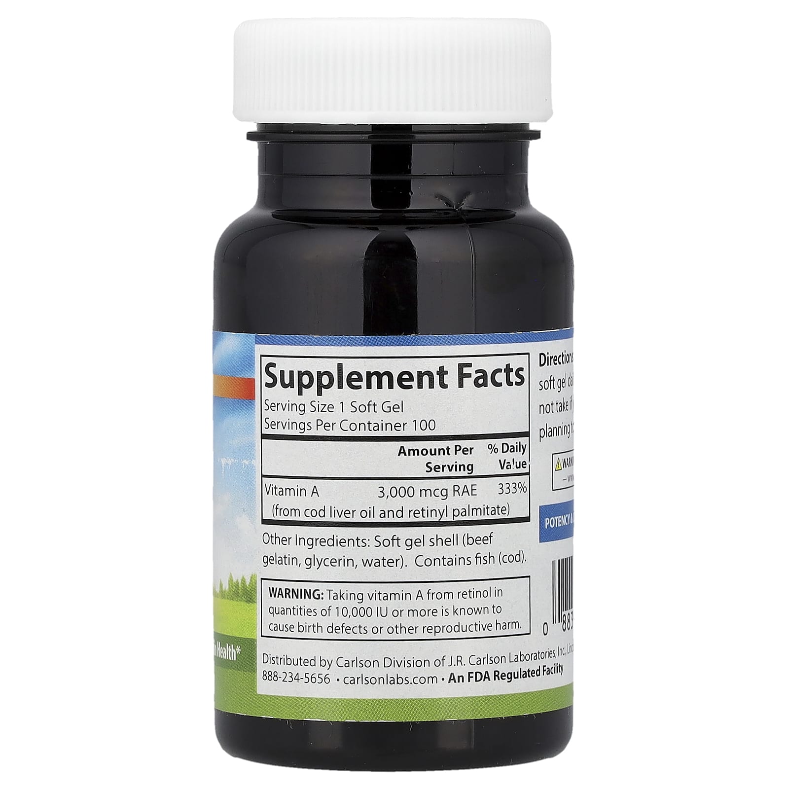 Carlson Vitamina A 3.000 mcg RAE (10.000 UI) 100 Cápsulas Softgel – Carlson Suplementos Vitaminas Vitamina A.
