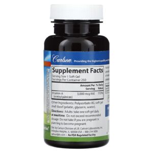 Carlson Vitamina A 3.000 mcg RAE (10.000 UI) 250 Cápsulas Softgel – Carlson Suplementos Vitaminas Vitamina A.
