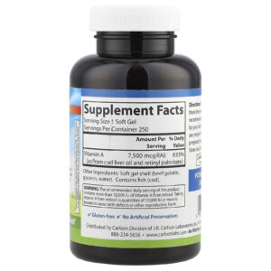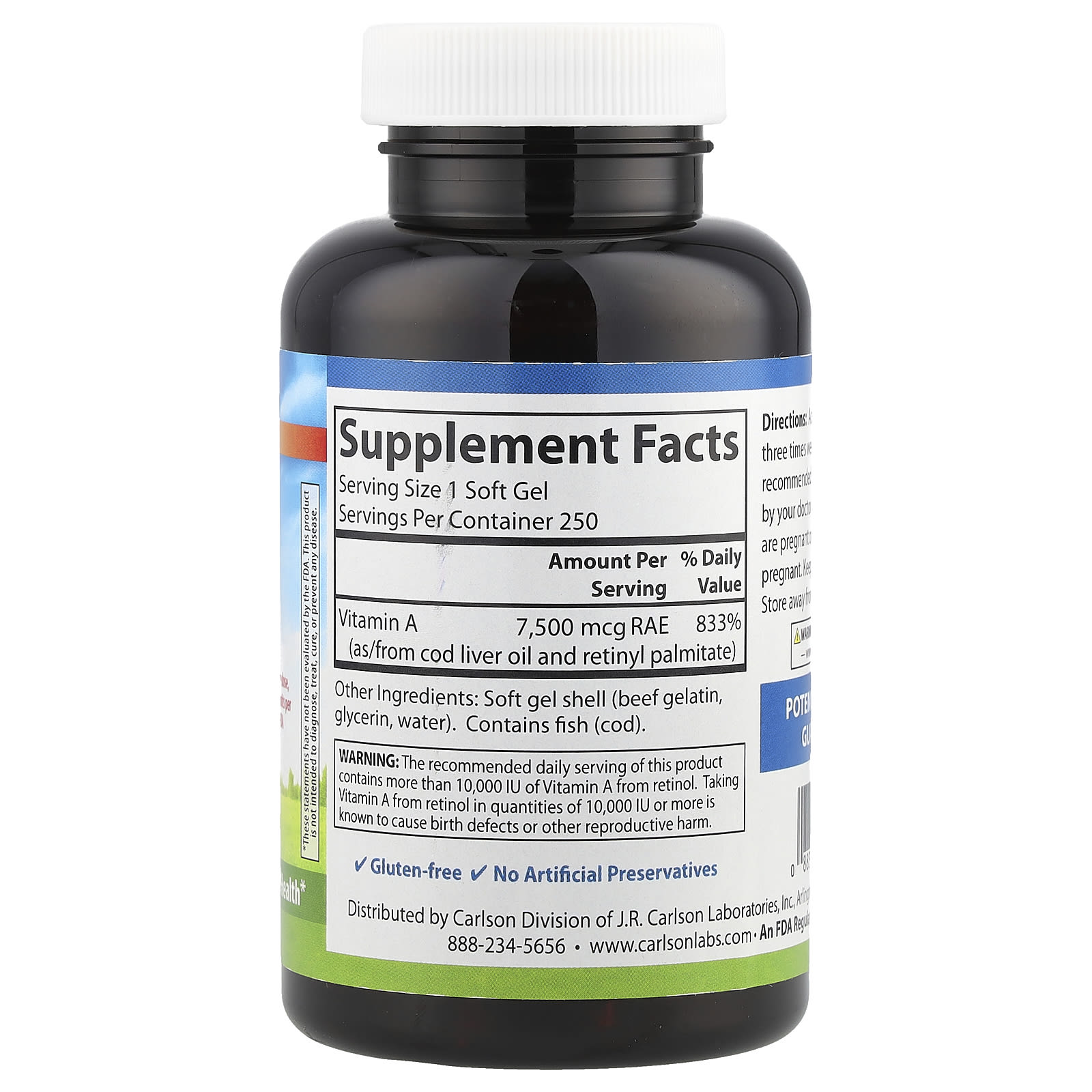 Carlson Vitamina A 7.500 mcg RAE (25.000 UI) 250 Cápsulas Softgel – Carlson Suplementos Vitaminas Vitamina A.