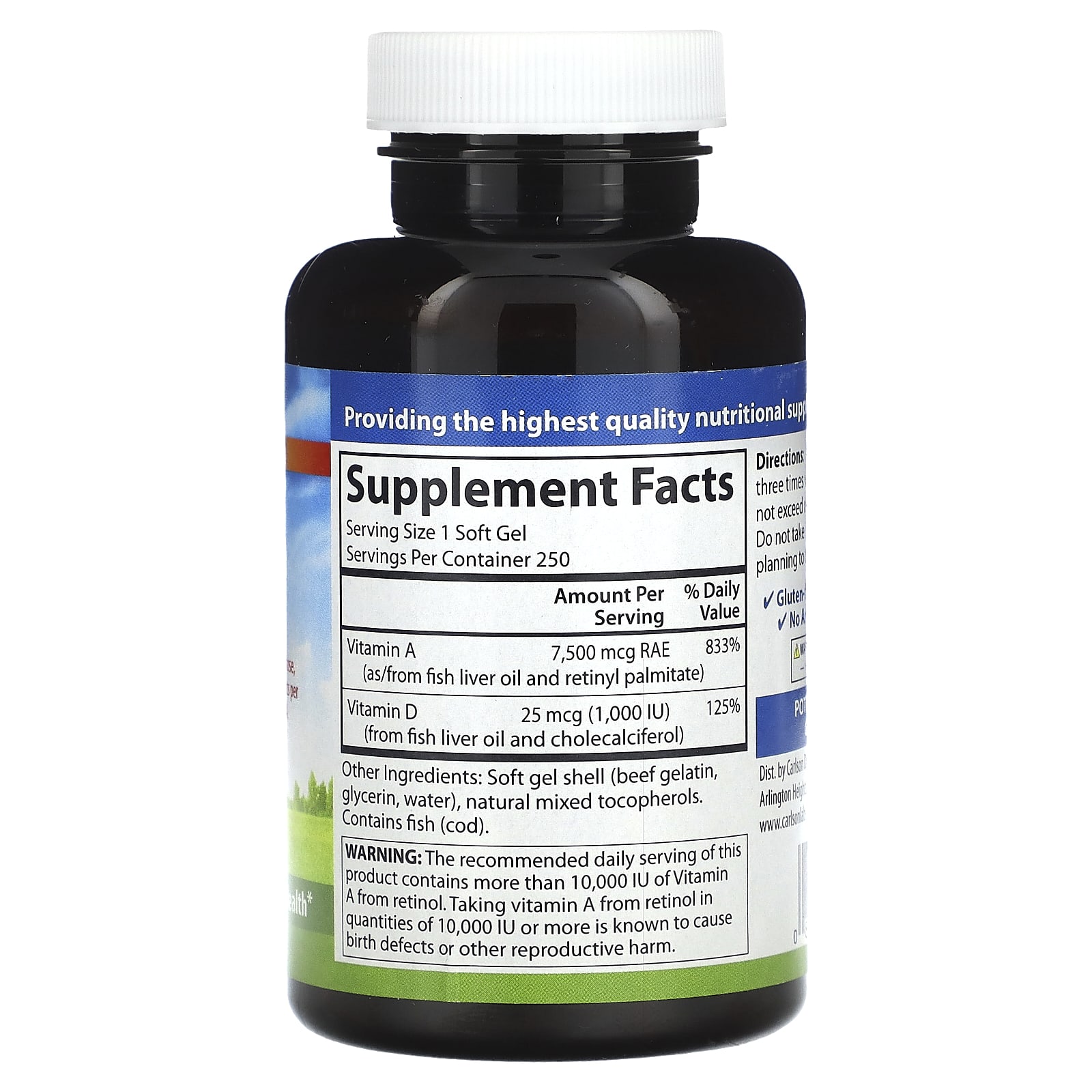 Carlson Vitamina A e D 250 Cápsulas Softgel – Carlson Suplementos Vitaminas Vitamina A e D.